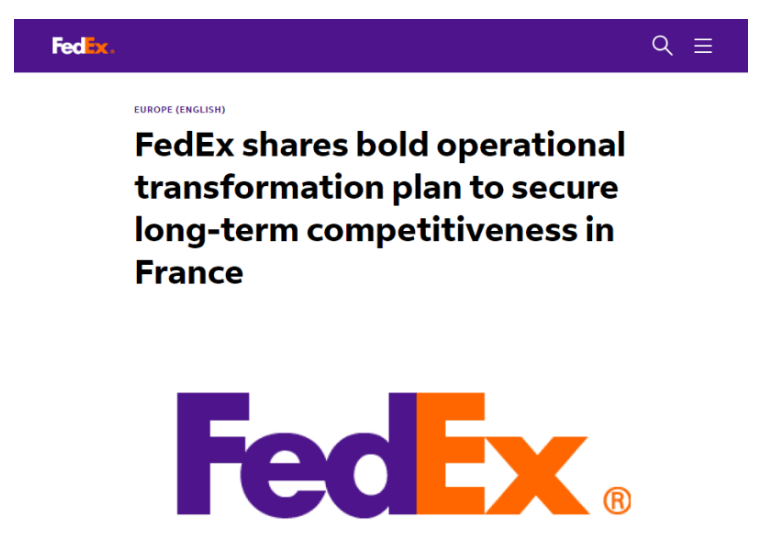 联邦快递(FedEx)近日在法国提出了一项大规模运营转型计划,拟通过重组本土业务网络、升级基础设施和技术体系,以提升在法国市场的长期竞争力。此次调整不涉及国际航空网络,巴黎戴高乐机场枢纽将保持不变。