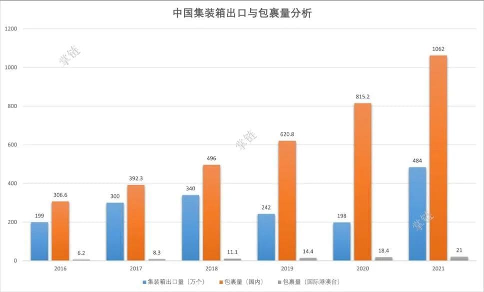 今年6月22日,中船集团制造出全球最大的集装箱船达24000TEU,总长近400米,交付台湾省最大航运企业长荣航运,对比2005年最大的船舶的11078TEU,如今的超大型集装箱船TEU已达到2005年的两倍多。自2020年新冠大流行以来,全球集装箱海运市场“一箱难求”,运价飞涨。俄乌冲突后,全球能源价格上涨,更使国际航运紧张。马士基表示,仅2022上半年集装箱平均运费就上涨了80%。疫情让实体商业深受其害,但给社交电商、直播电商打开新天窗,B2C的消费电商让全球包裹迅速猛增。据Technavio研究,全球跨境电商物流市场规模将达554.7亿美元。“集装箱”与“小包裹”相结合正在成为国际商贸物流一大趋势。据Statista对13个国家/地区重量不超过70磅(31.5kg)包裹的追踪数据:2020年全球包裹运输量达1312亿件,2021年为1579亿件。预计2026年全球包裹运输量将达2660亿件。